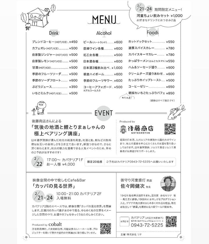 The station building of Tanushimaru Station on the JR Kyudai Main Line is an unmissable sight, designed as a giant kappa. This unique structure, completed in 1992, was based on a design by local high school students and was refurbished in 2018 with a fresh coat of paint. Visitors are greeted with a smile by the "Welcoming Kappa" on the platform, while inside the station, a stone statue originally built in 1956 continues its role as the "Kappa Station Master."